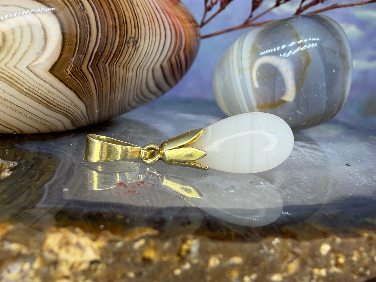 14 karaat gouden chalcedoon hanger